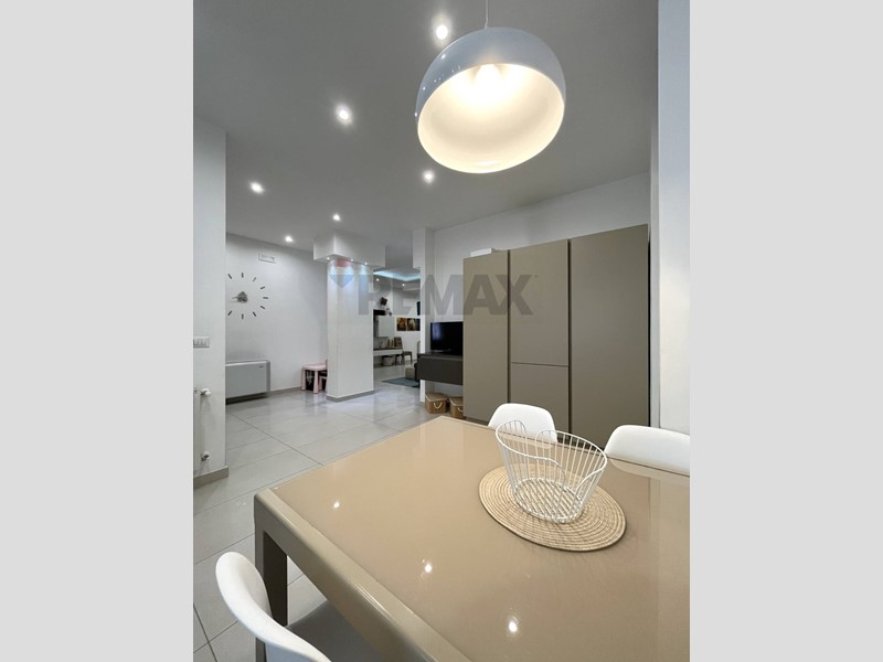 La casa è composta da tre vani oltre accessori ed è disposta nel seguente modo: ingresso in zona living con la presenza di un ampio salone ed una cucina a vista, camera da letto matrimoniale con annesso balcone e cabina armadio, ampia cameretta , bagno con piatto doccia e vano lavanderia annesso.