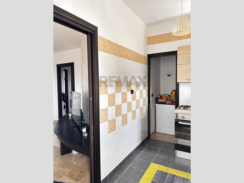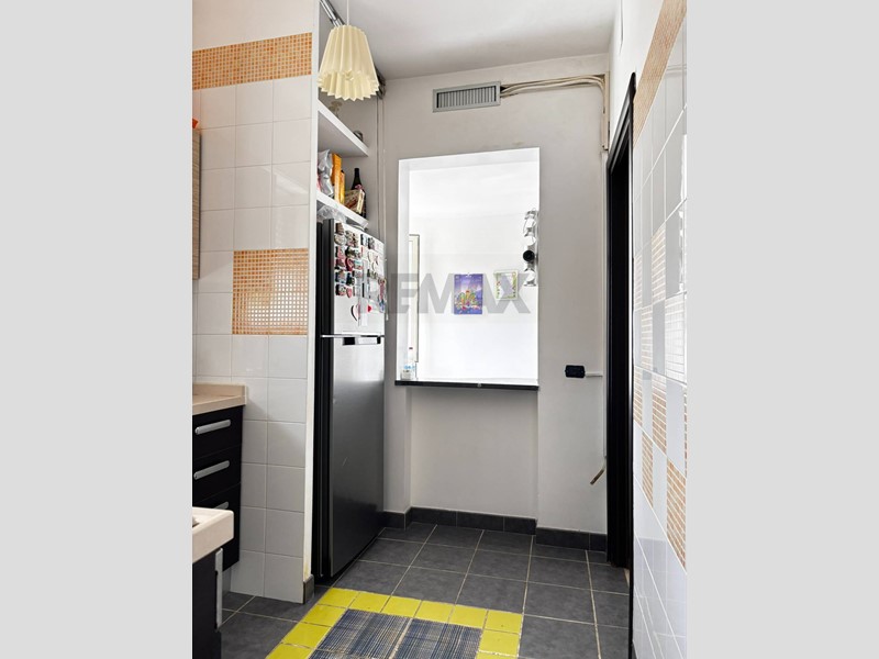 Entrando dalla porta di ingresso, troviamo una mezza parete che crea un disimpegno con l'ampio e luminoso salone, alla destra troviamo una porta per accedere alla zona notte mentre in fondo, troviamo l'accesso alla funzionale cucina e comoda lavanderia, indispensabile in un'appartamento.