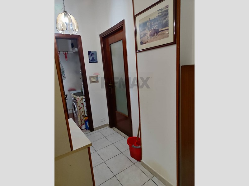 L'ingresso si apre su un disimpegno, al cui lato vi è un'ampia camera. A seguire un lungo corridoio che permette di accedere alle varie camere: cucina, camera da letto, ripostiglio, bagno, doppio servizio e un soggiorno doppio.