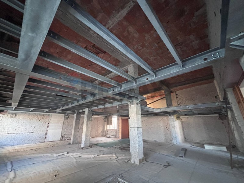 Il primo piano si presenta come unico locale ancora da suddividere , sono presenti 2 colonne per realizzare 2 bagni, grazie all altezza del tetto e stata realizzata una struttura in ferro zincato per la realizzazione di un soppalco abitabile