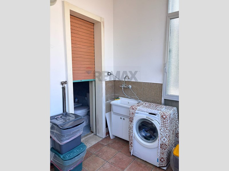 Gli ambienti risultano particolarmente ariosi e luminosi grazie al balcone nel salone, a una grande finestra in cucina e a uno spazioso terrazzino verandato, di pertinenza della cucina, attualmente adibito a lavanderia.