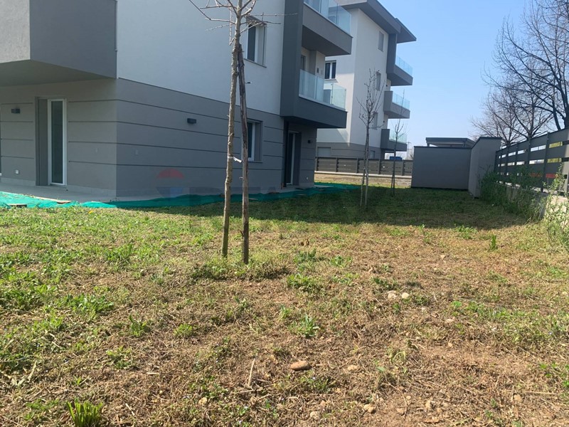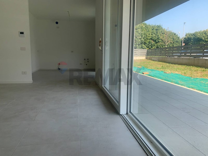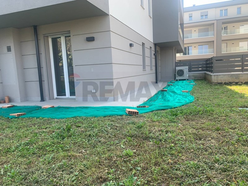 COMPOSIZIONE: Lunità immobiliare libera sui quattro lati è situata al piano terra di una palazzina di 8 unità immobiliari, vi si accede da un ingresso pedonale comune che porta al vano scale completo di ascensore, esposizione est-nord-ovest e giardino esclusivo sui tre lati, Così composta: ingresso direttamente nella zona living-cucina spaziosa e luminosa di 46 mq., affacciata direttamente con grandi vetrate sul giardino che consentono di godere al meglio dello spazio esterno. Tramite disimpegno si accede alla zona notte dove si trovano il bagno , due camere ed una ampia camera matrimoniale con bagno padronale, tutti i locali hanno affaccio sull'ampio giardino esclusivo.