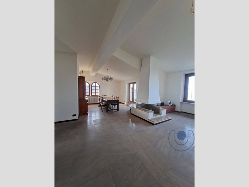 Immersa nel verde e circondata da un vasto parco privato, proponiamo in affitto, appartamento al primo ed ultimo piano in prestigiosa villa libera su quattro lati situata nella rinomata Strada Moncalvo.
