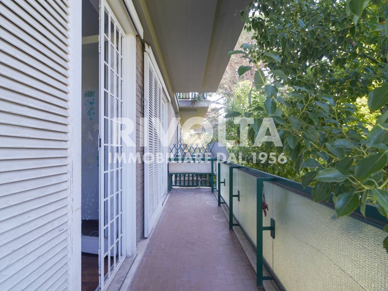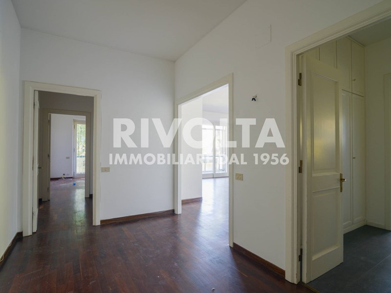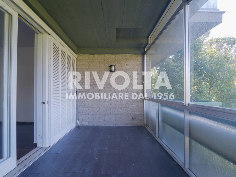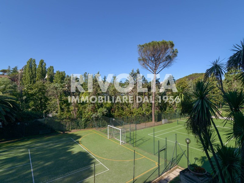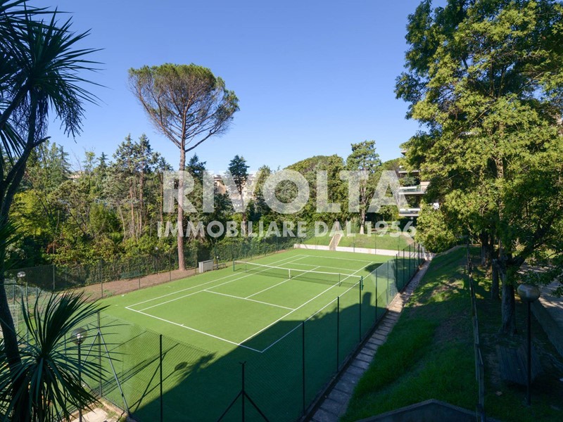 Rivolta vende in esclusiva - Via Cortina d'Ampezzo ad. (parte bassa) a due passi dal Supermercato CTS, in prestigioso comprensorio curatissimo, con guardiania 24 ore su 24 - 7 giorni su 7 - , in palazzina signorile di soli tre piani recentemente restaurata completamente, primo piano di 140 mq ca. oltre terrazza, balconi perimetrali, cantina e box auto. La proprietà si presenta in buone condizioni, molto assolata con doppia esposizione, estremamente silenziosa e si compone di: ingresso, salone doppio con camino e grandi vetrate che favoriscono l'accesso della luce naturale, cucina abitabile, due camere matrimoniali, studio, due bagni, balconi perimetrali, terrazzo vivibile in parte verandato, cantina, box auto e posti auto liberi all'interno del complesso. Il comprensorio dispone anche di una grande piscina, solarium, docce esterne, campo da tennis, campo da calcetto, area giochi per bambini/area pattinaggio, portineria h24, videocamere di sorveglianza, varie aree verdi e posti auto liberi per i condomini e loro ospiti.