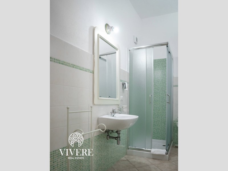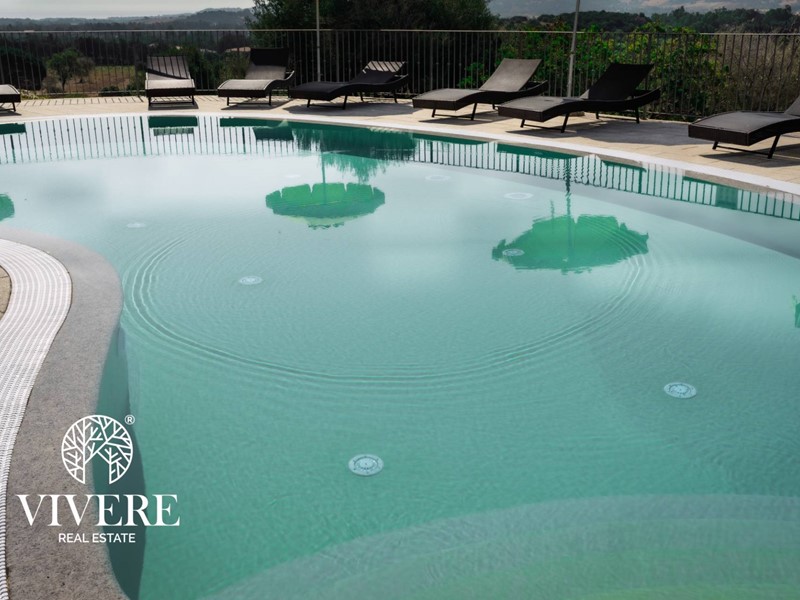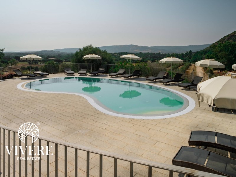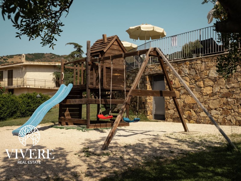 Adiacente troviamo un secondo corpo della struttura dove vi è la reception ed una sala comune con caminetto, cucina, bar e due servizi per gli ospiti, anche qui lo stile sardo domina larredamento, che si affaccia su una veranda da cui si accede al solarium con piscina, tutta con altezza di 1,40 mt, dotata di ombrelloni e sdraio. Il tutto circondato da ca 1000 mq di giardino, parte a prato, parte ad aiuole floreali con impianto di irrigazione spruzzo/goccia comandati da centraline automatiche. E presente anche un impianto fotovoltaico da 20 kwp con due stazioni di ricarica auto elettriche e pensiline, nel parcheggio di ca 200 mq. Tutti gli impianti sono automatizzati.