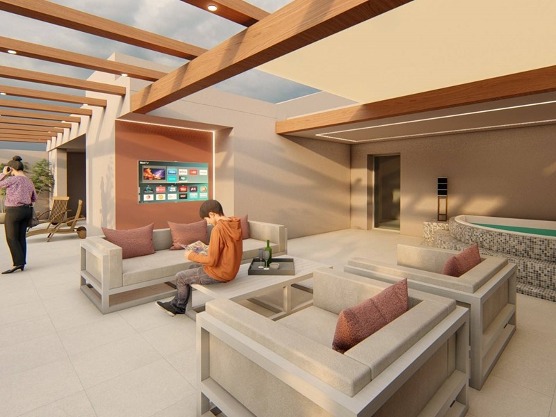 Dotato di posto auto, impianto fotovoltaico, Nous 110 litri, Split inverter in tutti gli ambienti e sistemi di utilizzo delle acque piovane reflue.