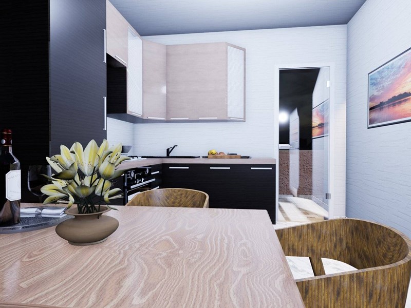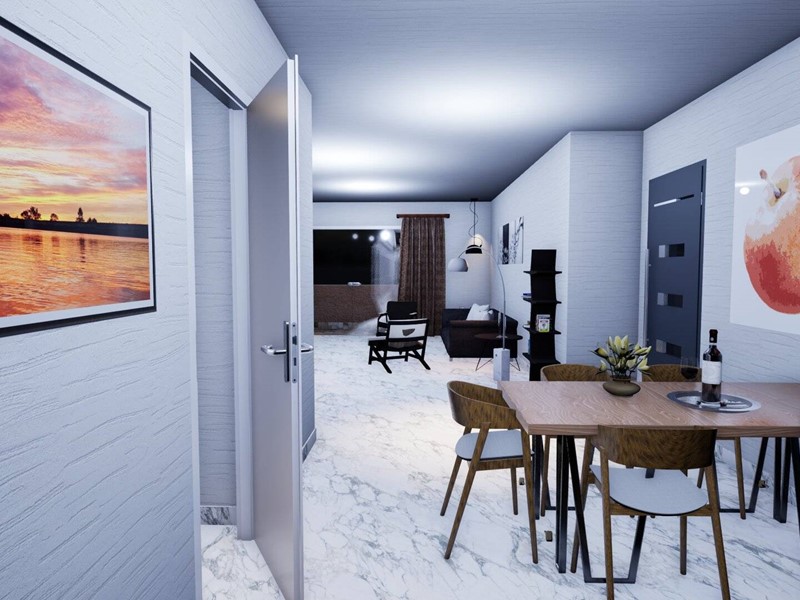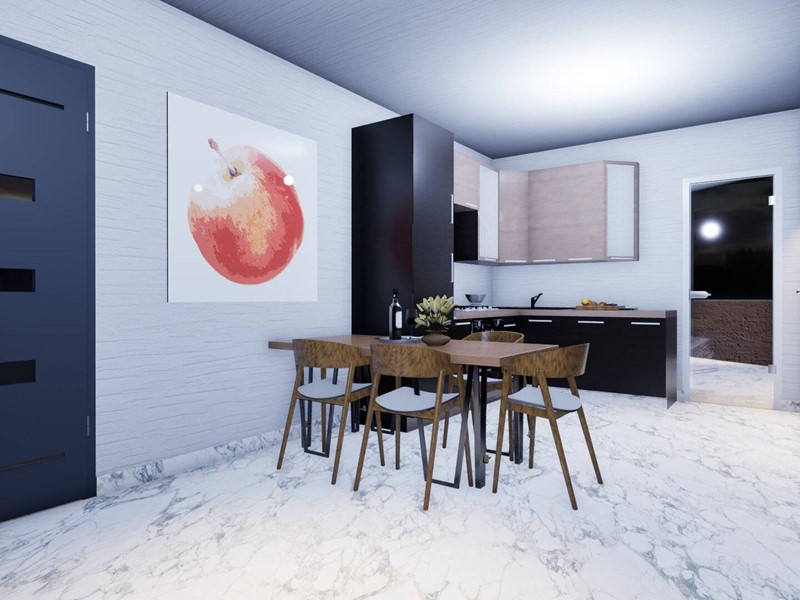 L'immobile, attualmente allo stato grezzo risulta così distribuito: Ingresso, il corridoio dove troviamo da un lato il soggiorno di circa 24 mq e la cucina abitabile di circa 14 mq, mentre dall' altro lato le tre camere da letto di cui una matrimoniale di circa 16 mq.