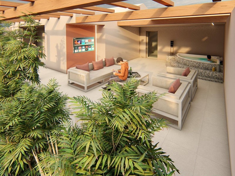 Dotato di posto auto, impianto fotovoltaico, Nous 110 litri, Split inverter in tutti gli ambienti e infine troviamo sistemi di utilizzo delle acque piovane reflue.