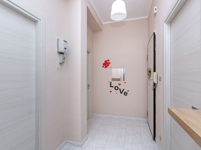 Scopri questo incantevole appartamento situato al quinto piano, perfetto per chi cerca un rifugio luminoso e accogliente. Con un'ottima esposizione a sud, est e ovest, gli spazi sono inondati di luce naturale durante tutto il giorno. L'ascensore ti porterà comodamente al tuo nuovo nido, dove troverai un ingresso che conduce a una cucina abitabile, ideale per preparare deliziosi pasti in compagnia.