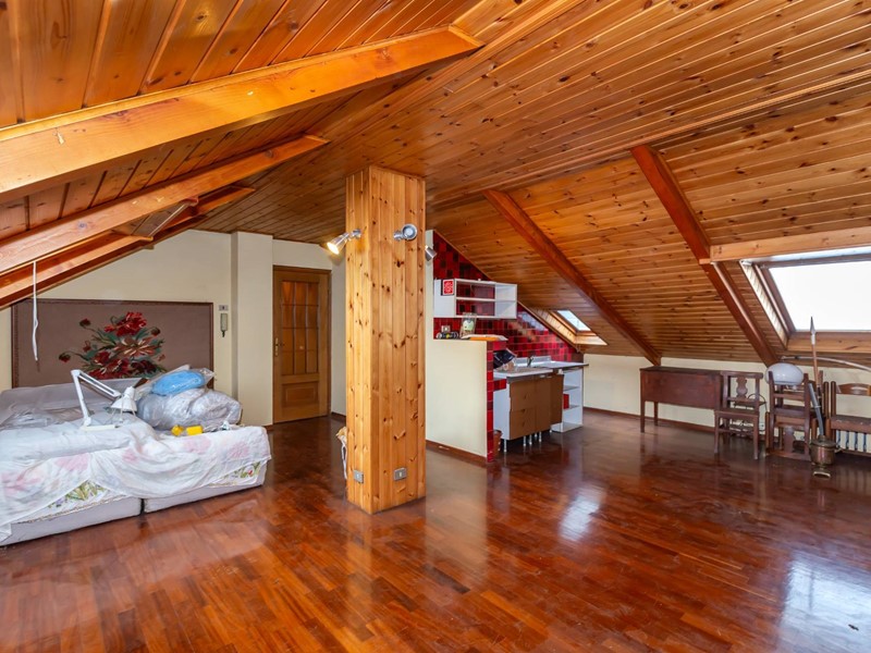 La mansarda, collegata tramite una scala interna, offre un ampio soggiorno con un secondo camino, creando un'atmosfera calda e accogliente. Qui si trovano anche due spaziose camere e un bagno, perfette per ospiti o come area privata. Non dimenticare il locale ad uso cantina al piano interrato, utile per riporre oggetti e attrezzature.