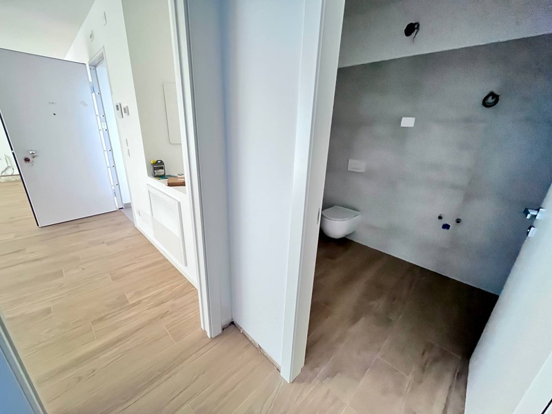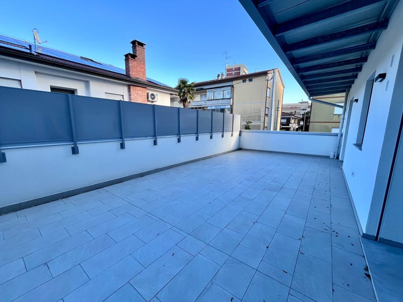 Pordenone zona Ospedale Civile, in posizione tranquilla, appartamento di comoda metratura in condominio di nuova realizzazione. Posizionato al primo piano con ascensore, è caratterizzato da un'ottima luminosità e presenza di stupende terrazze di grande metratura. Composto da ingresso sulla zona giorno di 37mq con angolo cottura e terrazza coperta, disimpegno notte attrezzabile, due camere matrimoniali di cui una con guardaroba, due bagni e seconda terrazza di 48mq. Completo di garage, cantina e posto auto esterno esclusivo. Ottime finiture, abitabile da subito e non soggetto Iva.