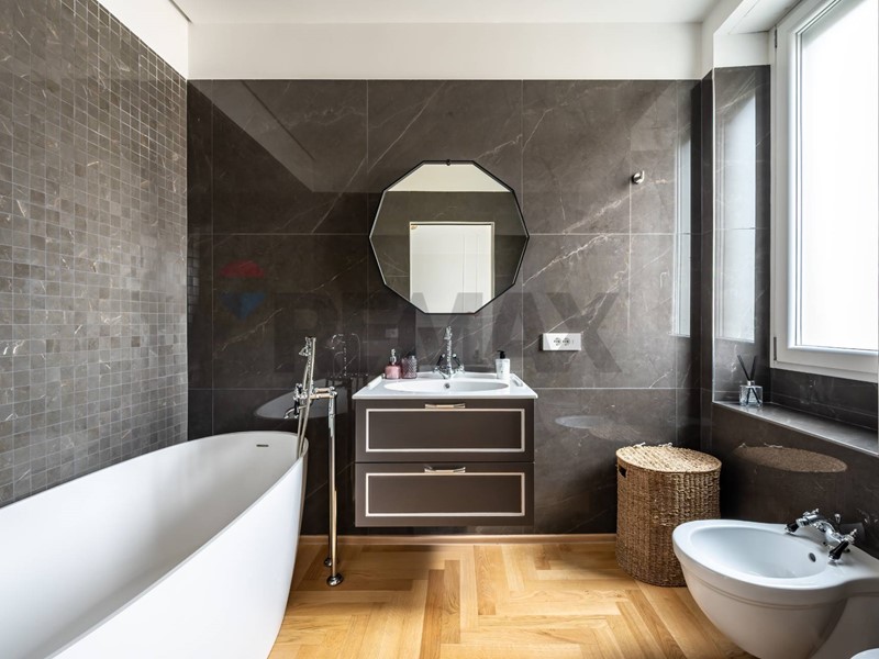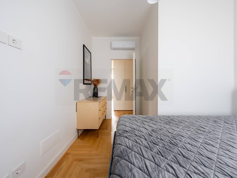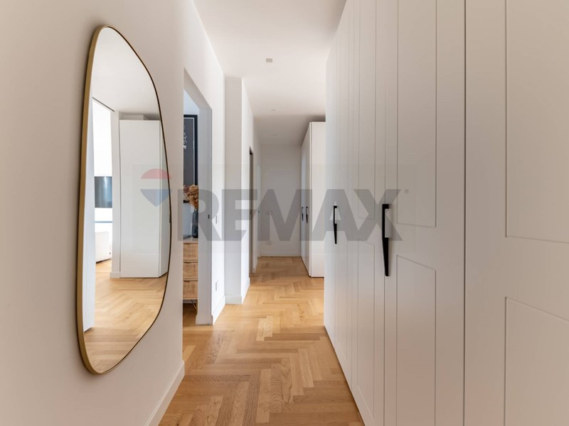 La soluzione si presenta appena RISTRUTTURATA, completa di infissi in doppio vetro pvc, pavimentazione parquet, boiserie, riscaldamento centralizzato, aria condizionata in tutti gli ambienti, cucina realizzata su misura dotata di frigo, freezer, piano cottura a induzione, lavastoviglie e lavatrice.