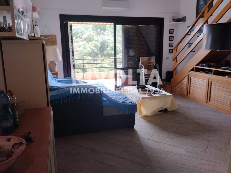 Appartamento a pochi passi dal centro in zona tranquilla con affacci ne verde lontano dal traffico , dal rumore e con affaccio panoramico vista mare. L'immobile si compone al primo livello di un ampio soggiorno con cucina a vista una camera matrimoniale, una camera con un letto a castello un servizio e un terrazzo vivibile con vista mare, al piano superiore e una camera con un altro servizio. Completa la proprietà un box di mq 21.