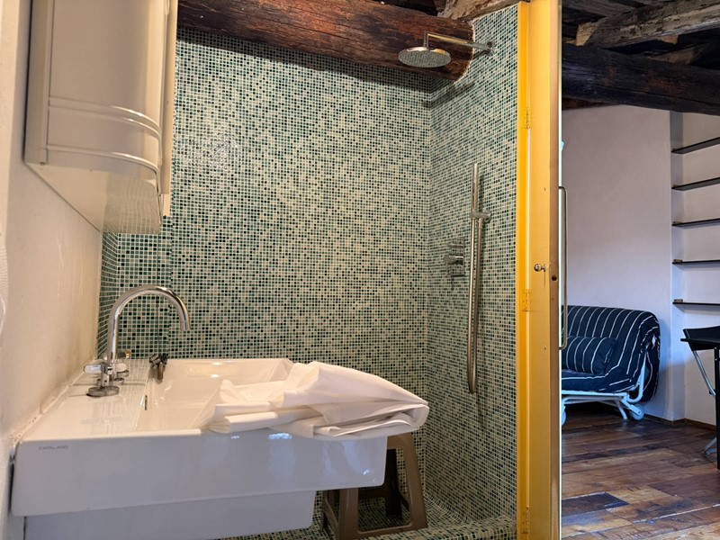 La soluzione si trova al 4 ed ultimo piano di palazzina dotata di ascensore e si compone di locale unico mansardato con angolo cottura e divano letto, piccolo terrazzo a pozzo e bagno separato con doccia.