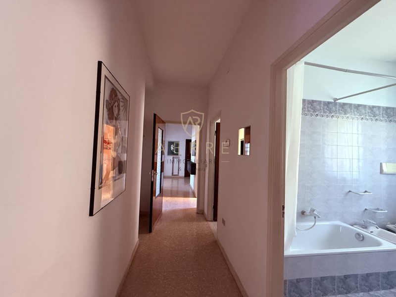L'appartamento con tripla esposizione è così composto: Ingresso e doppio soggiorno con accesso su ampio balcone verso est, disimpegno, 1 cucina con balcone, 1 retro cucina, 2 bagni, 1 ripostiglio, 3 camere da letto di cui 2 con accesso su balcone/terrazzino. La casa è stata abitata fino agli anni 2000, quindi potrebbe essere necessario un intervento di ammodernamento, gli infissi sono doppi in alluminio, il portoncino d'ingresso è blindato ed il riscaldamento è autonomo.