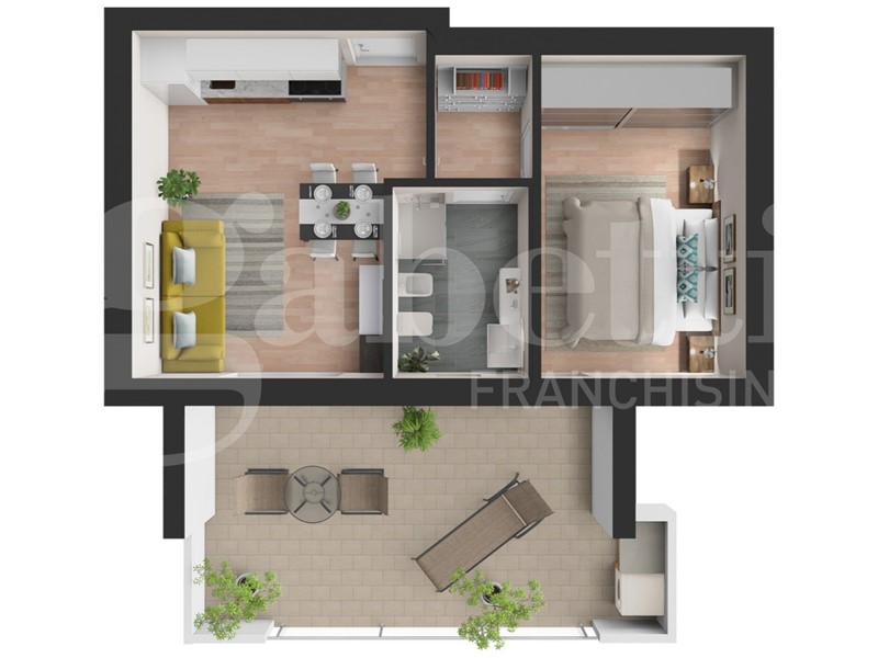 In particolare proponiamo un bilocale, situato al primo piano, si compone di un accogliente soggiorno con angolo cottura, una camera matrimoniale, un bagno finestrato e un ampio terrazzo che regala momenti di relax. Gli ambienti, luminosi e ben distribuiti, sono progettati per offrire un'esperienza abitativa armoniosa e confortevole.