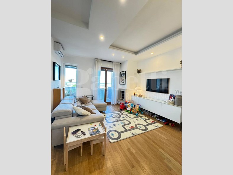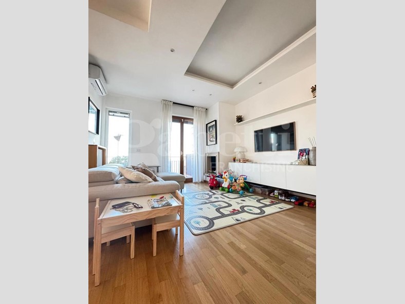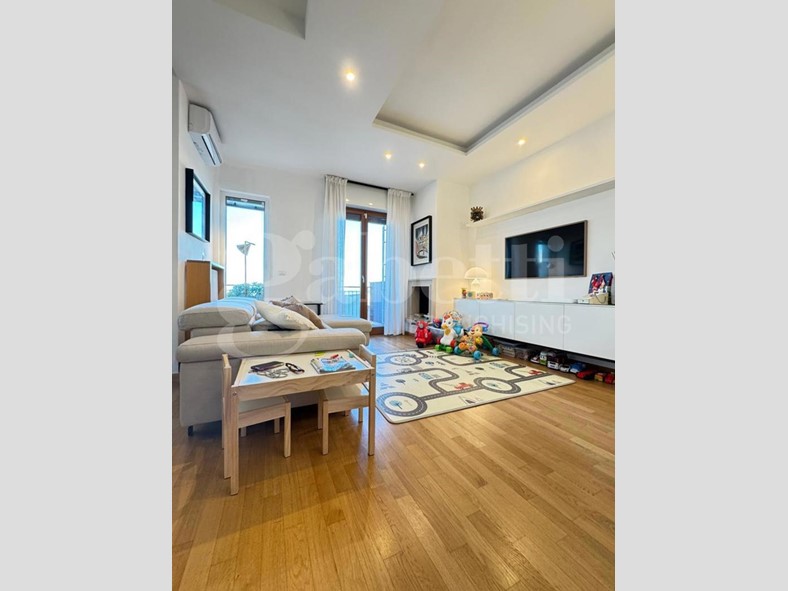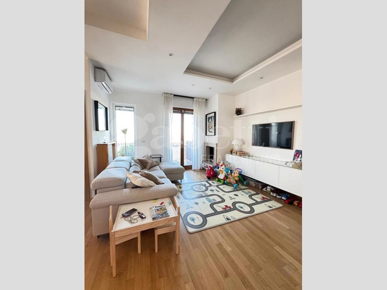L'appartamento è dotato di riscaldamento termoautonomo con caldaia a condensazione Wi-Fi installata nel 2023, termosifoni in ghisa in tutti gli ambienti e termoarredo nel bagno. Il comfort è completato da condizionatori Wi-Fi Haier in tutte le stanze, tapparelle elettriche e domotizzate, videocitofono, cancellate e zanzariere, infissi a taglio termico con vetrocamera, parquet in rovere, controsoffitti con faretti, sanitari sospesi, tende da sole e camino moderno funzionante con schermatura in vetro ceramico. Presente anche un impianto di irrigazione a servizio degli spazi esterni.
