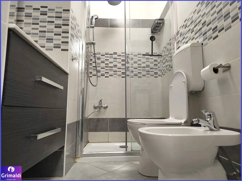 Il bagno, ben ristrutturato, ha un ampio box doccia, un lavabo con mobile cassettiera, oltre ai due sanitari.