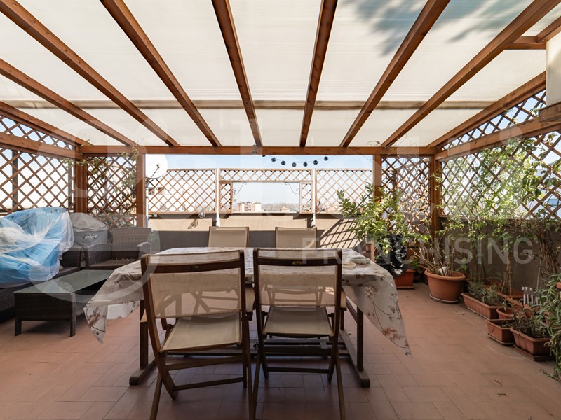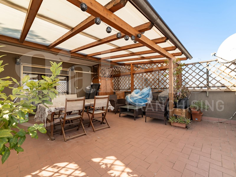 L'immobile è così composto: ingresso che introduce in un soggiorno ampio e luminoso, arricchito da un grande terrazzo perfetto per momenti di relax all'aria aperta.