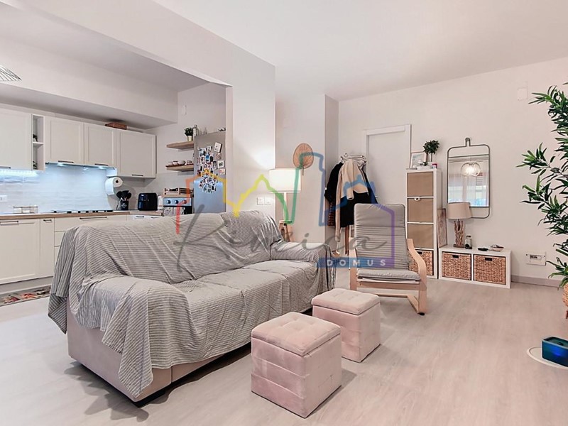 Internamente l’abitazione si compone di ingresso in soggiorno aperto sulla cucina abitabile, con spazi ben proporzionati e facilmente organizzabili per distinguere la zona cottura, l’area pranzo e la zona relax.