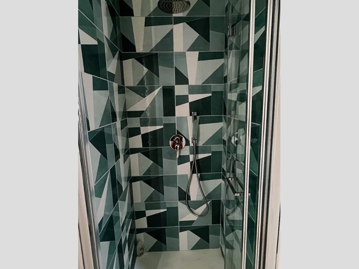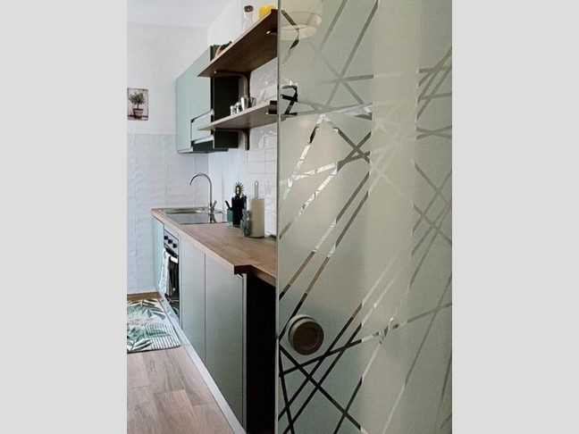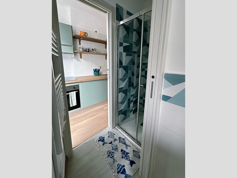 L'ingresso introduce ad un soggiorno con divano e angolo tv per i tuoi momenti di relax. Sulla sinistra una moderna porta a vetro scorrevole divide l'ambiente da un elegante e pratica cucina. I toni del verde prevalgono donando all'ambiente un senso di calma e tranquillità. Il bagno è dotato di sanitari a pavimento e doccia con bellissime piastrelle geometriche decorative. Anche la camera da letto si presenta spaziosa e ordinata ed è dotata di un grande armadio con specchio.