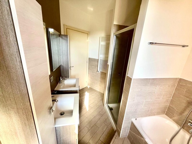 Angelica (Montopoli in Val d'Arno) - In ottima e richiesta zona residenziale, posto in prossimità dei principali servizi, si propone in vendita un appartamento di buona metratura e recente costruzione, posto al primo ed ultimo piano d'angolo, con accesso da scala esterna non esclusiva. L'appartamento è composto da ingresso in ampio e luminoso soggiorno con affaccio sul balcone, cucina abitabile separata con ripostiglio/dispensa, disimpegno notte, due camere matrimoniali (di cui una con cabina armadio) oltre al bagno dotato di doppio lavabo, doccia e vasca. Completa la proprietà un garage di circa 40 mq al piano seminterrato, corredato da attacchi lavanderia e doccia. L'immobile è dotato di due condizionatori, impianto di allarme, zanzariere ed addolcitore. Classe energetica: F (148.12 kWh/mq anno). Rif. 1538.