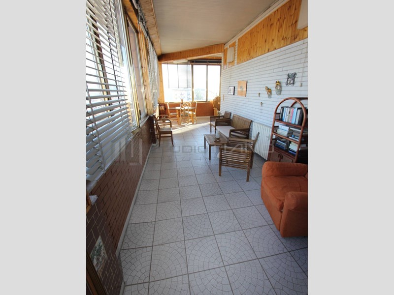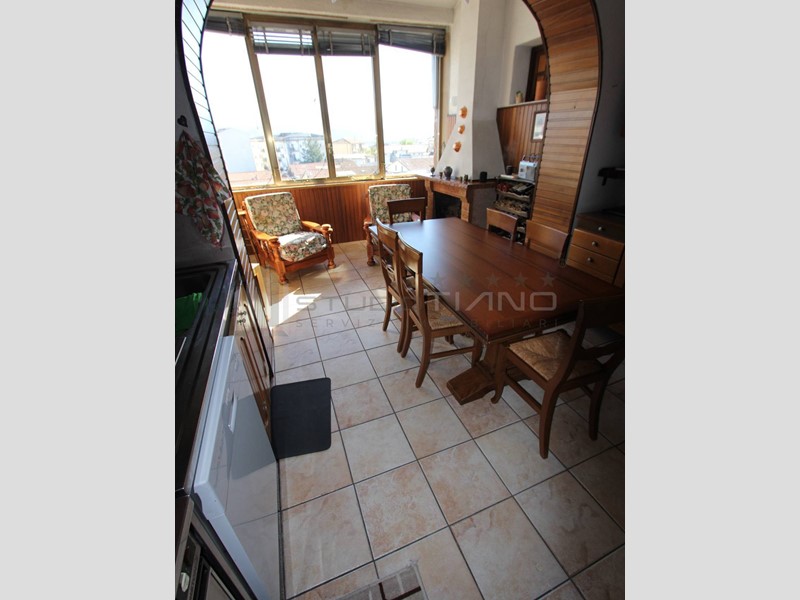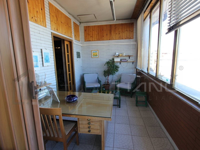 Allesterno, la casa si apre su un balcone e soprattutto su un magnifico terrazzo coperto e verandato di 51 mq, uno spazio prezioso da vivere tutto lanno: ideale per cene, momenti di relax o per creare una vera oasi privata sopra la città.