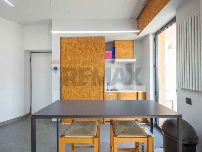 L' immobile, per il momento utilizzato come ufficio presenta, varcato l' ingresso, un ampio ambiente nel quale è allocata una comoda cucina a scomparsa, una stanza e un bagno.