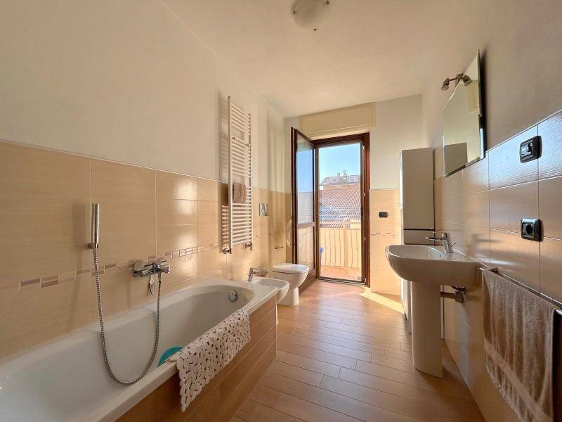 In zona residenziale, l'appartamento si presenta in un contesto di recente costruzione caratterizzato da più unità abitative con ampi spazi. L'appartamento si sviluppa interamente al primo piano e si compone di quattro ampi locali. L'ingresso si apre direttamente sulla zona giorno composta da un ampio salotto e la cucina abitabile; tramite il disimpegno si accede alla zona notte composta da due ampie camere da letto e i due bagni dotati di doccia e vasca. Tutti i locali hanno accesso sul balcone privato sviluppato sul retro e davanti. Il riscaldamento è autonomo a metano e a pavimento. Presenti pannelli solari per l'acqua calda. Completano la proprietà il garage di 22/mq e la cantina. Le finiture al suo interno sono recenti e in stile moderno. Per maggiori informazioni contattare il numero 0171385380 o recarsi direttamente presso la nostra agenzia in Via Mario Rosso 55C - Beinette.