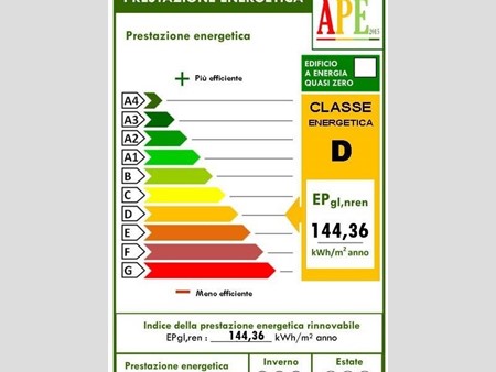 Ape: D EP gl,nren 144,36 kWh/mq anno