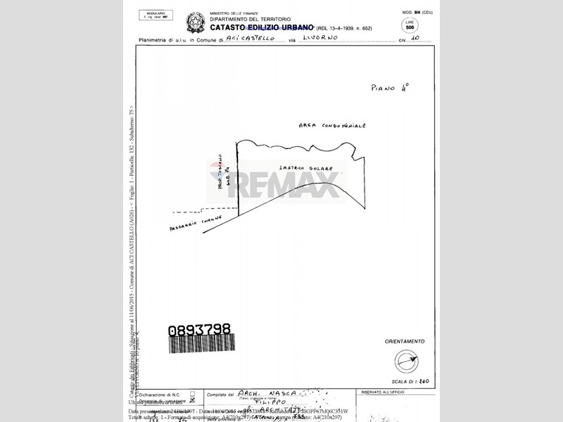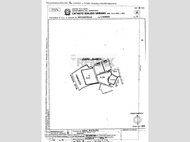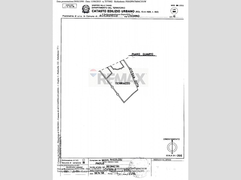 ACI TREZZA, Via Livorno 51/A, RE/MAX, Società Internazionale di Intermediazione Immobiliare, propone in vendita un grazioso appartamento con vista mare composto da quattro vani più accessori (4,5 vani e 122 mq catastali), posto al piano quarto ed ultimo di un edificio con N. 4 elevazioni fuori terra e copertura a terrazzo, servito da ascensore, inserito in un contesto residenziale e dotato di Terrazzo di circa 100 mq posto a livello con lappartamento.