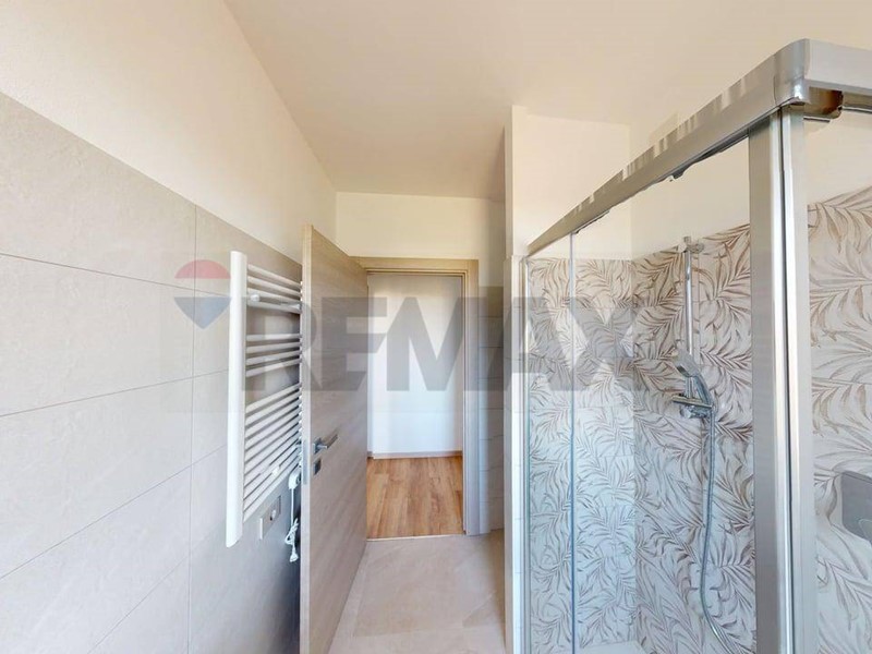 -Bagno con termoarredo, box doccia già installato e colonna a scomparsa per asciugatrice e lavatrice