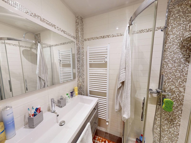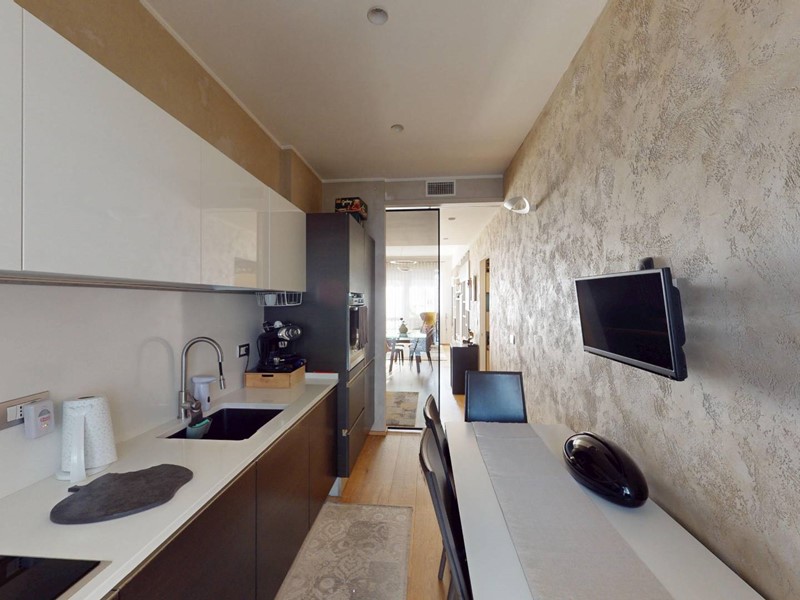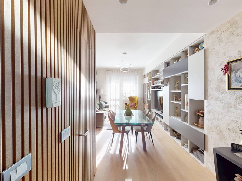 L'appartamento, in ottimo condizioni interne, è composto da ingresso living su zona giorno, cucina, due ampie camere da letto, due ripostigli, uno interno ed uno esterno e doppi servizi.
