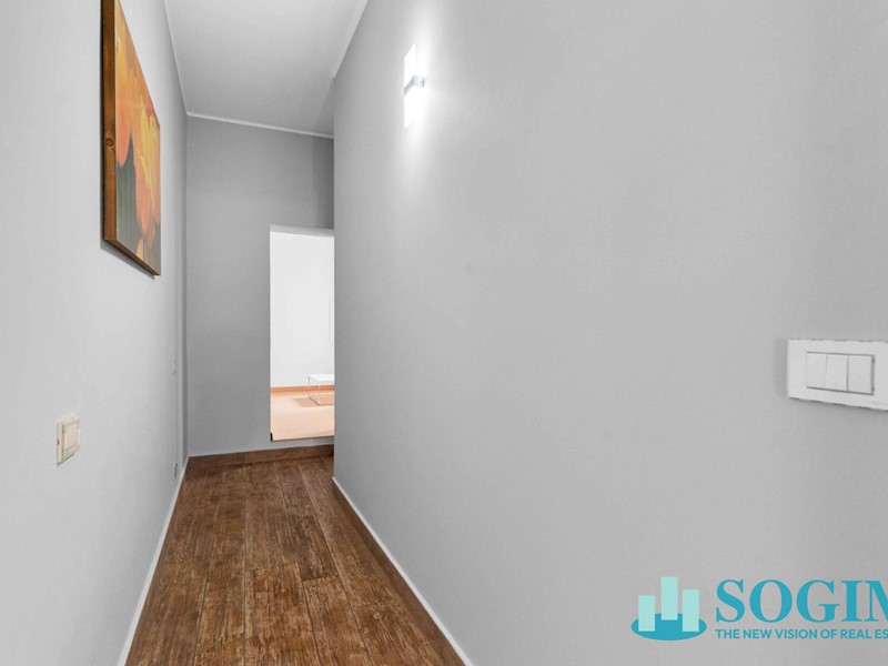 Lappartamento è in ottime condizioni ed è dotato di porta blindata, infissi in legno con doppio vetro, videocitofono, impianto dallarme e riscaldamento con termovalvole. Le finiture prevedono gres effetto legno, ceramica nei bagni e laminato nella zona notte.