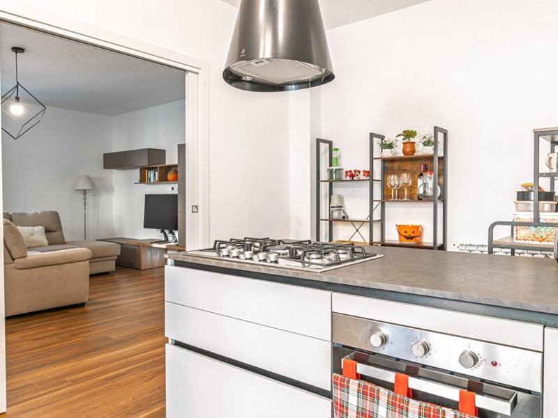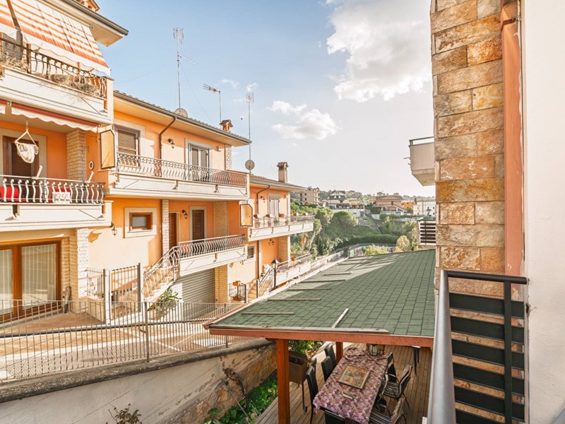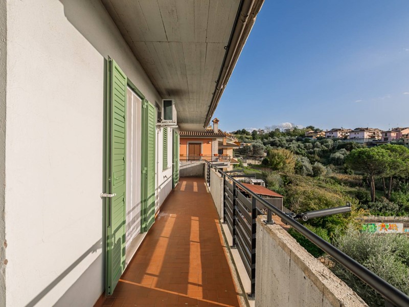L'appartamento si apre su un accogliente ingresso che introduce a un ampio salone e a una cucina abitabile, entrambi caratterizzati da accesso diretto al terrazzo ideale per momenti conviviali all'aperto. Un corridoio conduce alla zona notte, composta da tre camere da letto matrimoniali, due bagni finestrati e un balcone con suggestiva vista panoramica sulla vallata.
