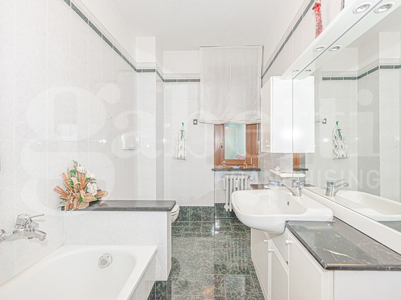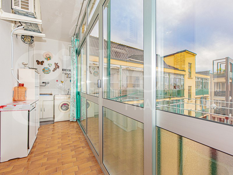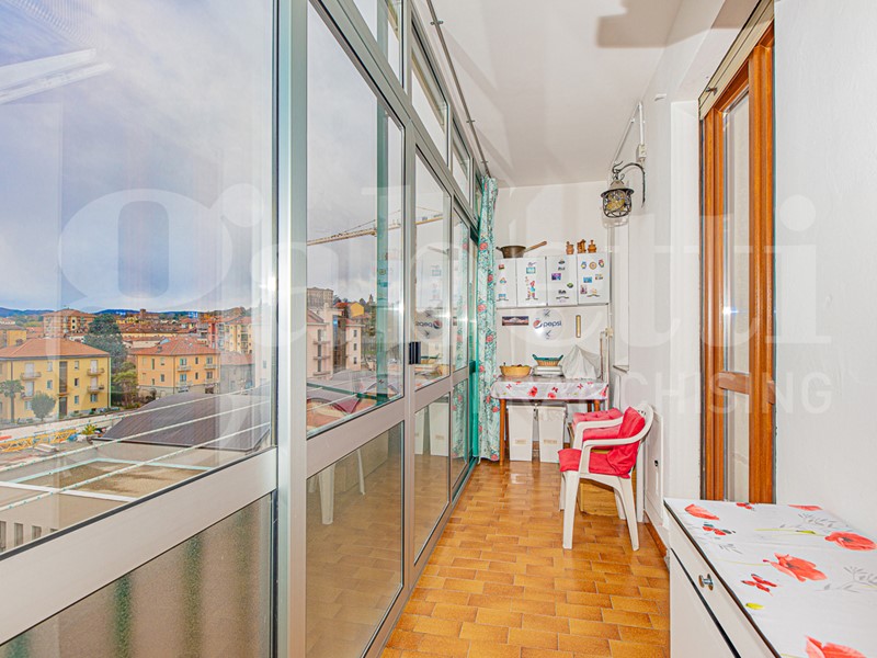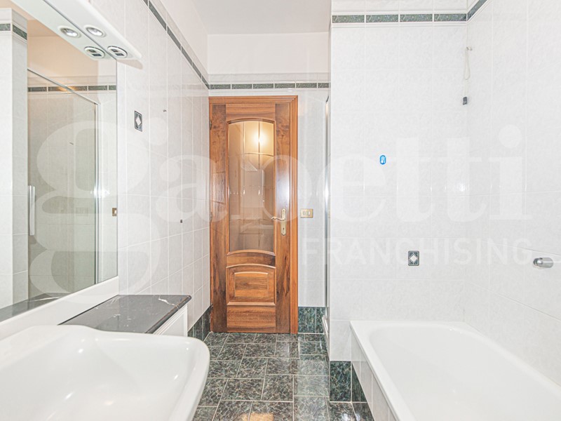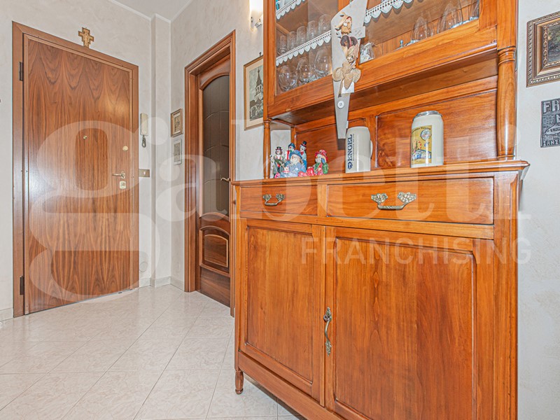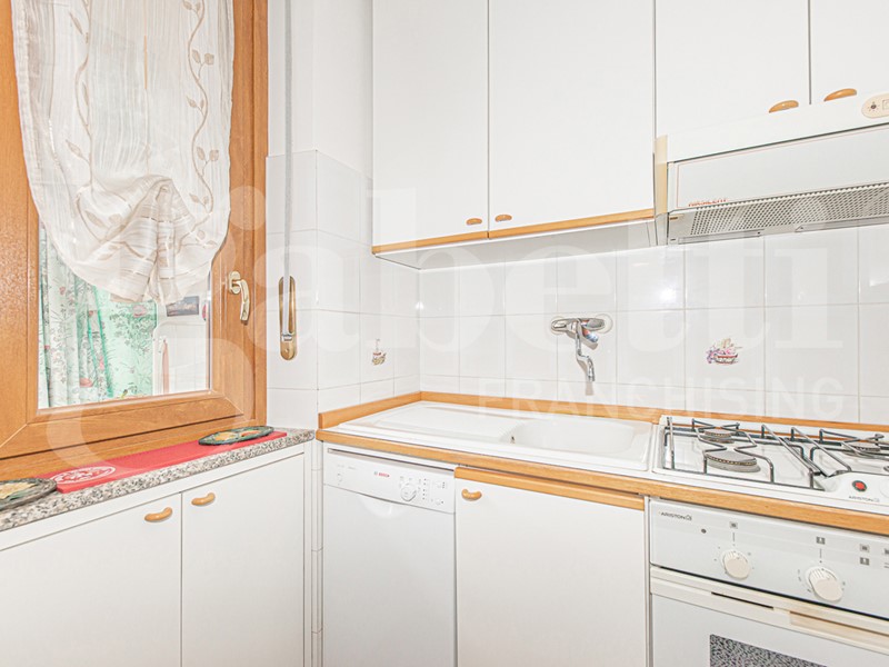 L'immobile vanta due balconi, di cui uno con veranda e spazio per lavatrice e lavatoio. La pavimentazione chiara e uniforme permette di arredare gli ambienti con stile moderno. Completano la soluzione una cantina e un box auto singolo disponibile a Euro 18.000.