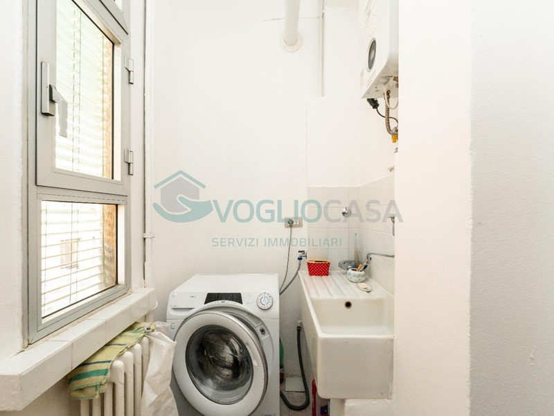 COMPOSTO DA: ingresso con disimpegno, soggiorno con balcone esposto a EST con affaccio sulla tranquillissima via Sangallo, due ripostigli, di cui uno di grandi dimensioni, ampia camera matrimoniale con doppio punto luce, cucina abitabile con accesso al secondo balcone esposto a OVEST, zona lavanderia dedicata, in area che era precedentemente adibita a cucinotto, seconda camera da letto e infine bagno recentemente ristrutturato, con box doccia e finestrato.