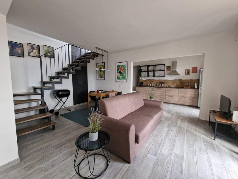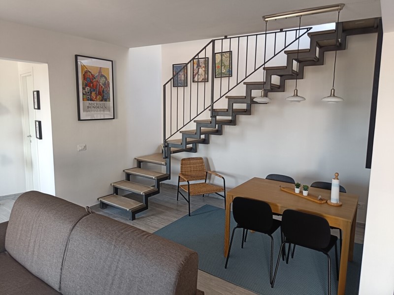 L'appartamento (65mq calpestabili) si trova al secondo ed ultimo piano in una palazzina posizionata nel centro storico del bellissimo borgo ed è così composto: ingresso nel soggiorno con angolo cottura e accesso al balcone panoramico, bagno con doccia e lavatrice, una grande camera matrimoniale, un ripostiglio, e dal soggiorno, una comoda scala conduce al secondo ripostiglio (20mq sottotetto) ed al terrazzo di 47 mq da dove si può ammirare i tetti del borgo e la splendida campagna che lo circonda. Aria condizionata per raffreddamento/ riscaldamento. Molto luminoso e panoramico.