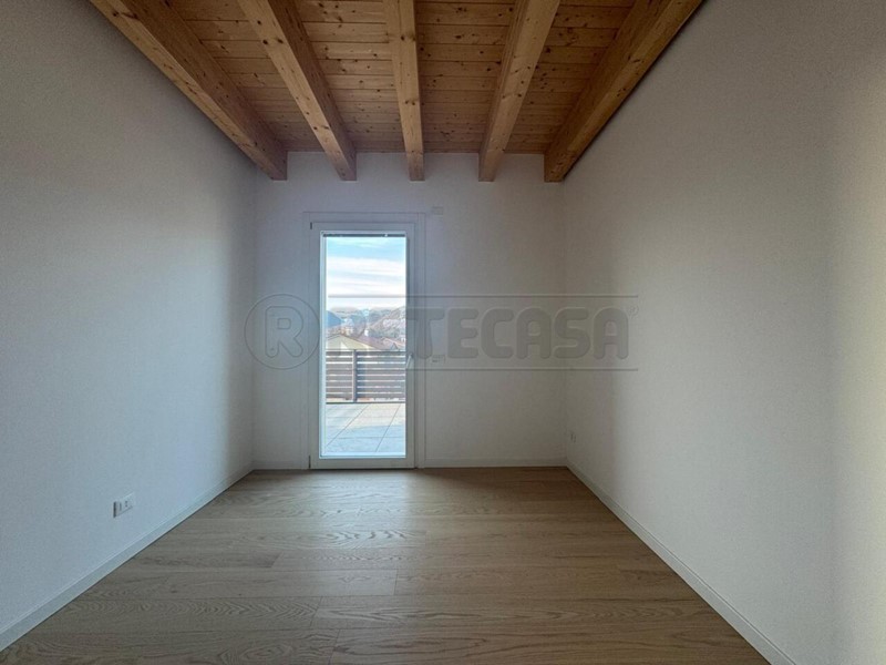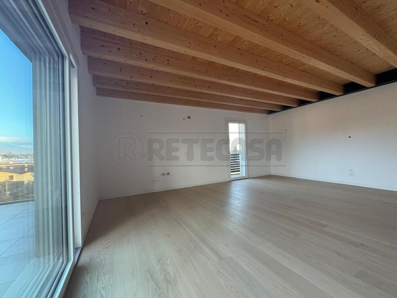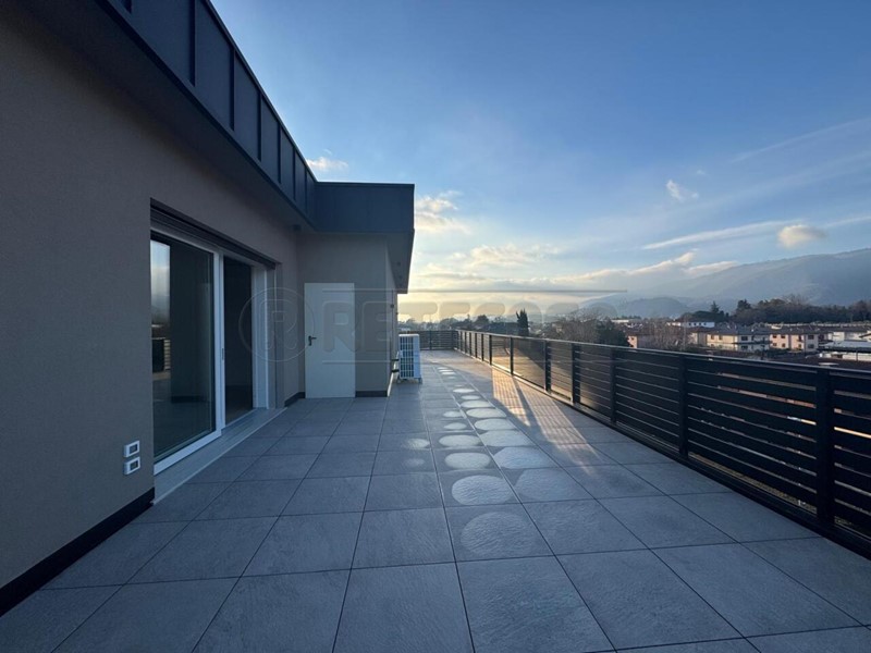 ROMANO D'EZZELINO - SAN GIACOMO: Spazioso attico con grande terrazzo di oltre 100mq vista montagne. Zona living ampia e luminosa, tre camere, doppi servizi e lavanderia. Garage doppio e posto auto esterno di pertinenza. Classe A4