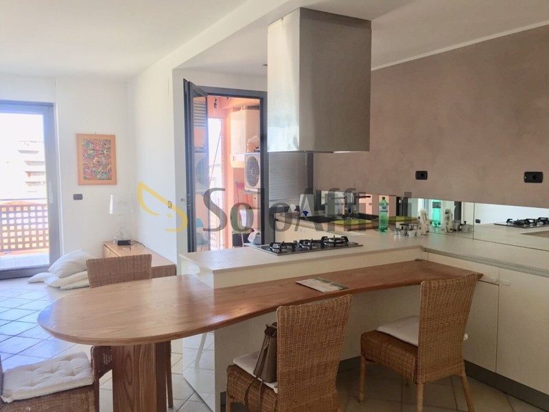 Pescara Portanuova, in palazzina di recente costruzione precisamente nel moderno complesso " il Molino" si propone in affitto un bellissimo appartamento trilocale di circa 85 mq arredato con gusto e con arredi di pregio così composto: ingresso, zona giorno con cucina a vista, ampia camera matrimoniale, camera singola, servizio con doccia e secondo servizio con vasca idromassaggio. Si specifica che nel canone è compreso il garage che si trova all'interno del condominio al piano -1 dove è possibile rimettere liberamente bici e moto. L' immobile elegante e moderno allo stesso tempo si trova al piano sesto di questo complesso prestigioso offrendo, grazie all' ampio terrazzo panoramico, massima luminosità e una vista suggestiva. L' ampio terrazzo dotato di tende motorizzate consentono di sfruttare al meglio questo spazio anche nei mesi piu caldi conferendo privacy e allo stesso tempo offrendo una vista megnifica. La posizione semi centrale, la vicinanza all' ingresso dell' asse attrezzato unita alla comodità di avere sotto casa un supermercato aperto 24/7 rendono questo appartamento adatto a chi voglia godere di tutti i comfort possibili. Gli oneri condominiali ammontano ad euro 55,00 mensili circa salvo conguagli. Si richiede valida forma di garanzia, 085/293324 NB La proprietà non preferisce animali domestici e si prererirebbe locare a non fumatori.