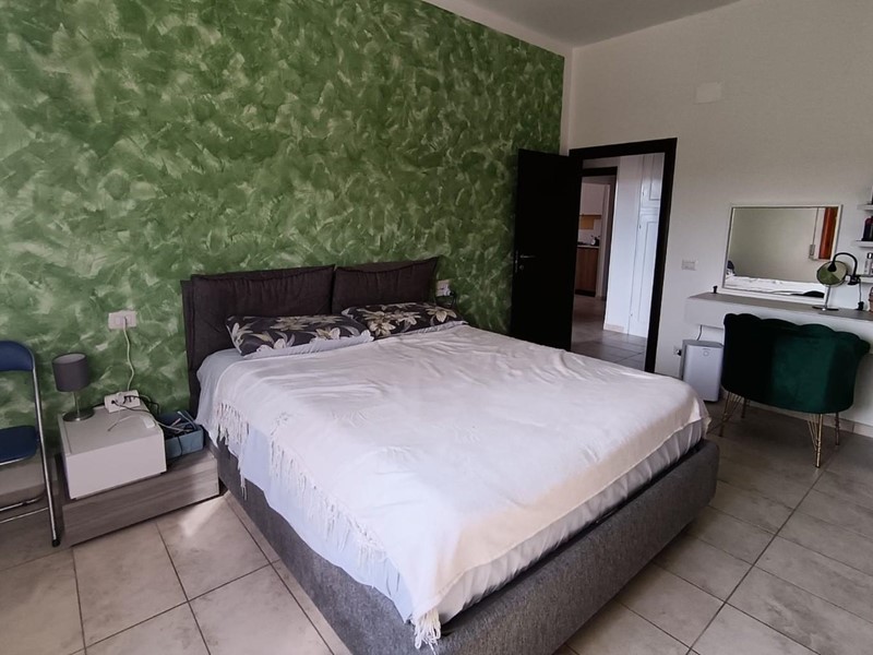 L'appartamento è posto al primo piano composto da disimpegno, ampia sala con terrazza, cucina abitabile, due camere matrimoniali, una delle quali con terrazza, e da un servizio igienico finestrato e dotato di box doccia. Al piano terra, ripostiglio sottoscala.