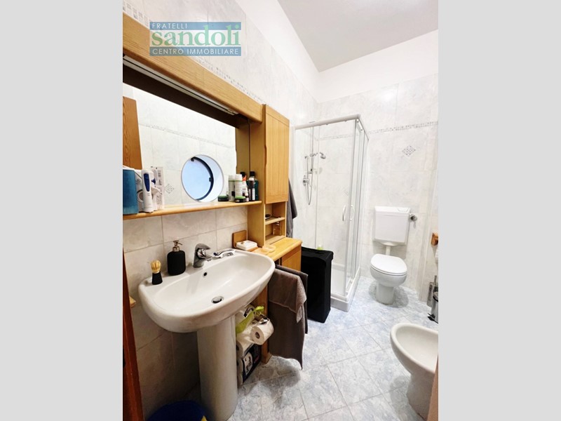 L'immobile è composto da: l'ingresso living nell'ampio soggiorno, dotato tra l'altro, di portafinestra che da accesso diretto al particolare terrazzino panoramico, comunicante al soggiorno è presente la cucina, divisa da una porta scorrevole, con la zona di cottura e lavaggio. Di fronte al soggiorno, dall'altro lato del vano d'ingresso, attualmente vi è il salotto con zona tv, ma, potrebbe essere variata la sua destinazione, creando la seconda camera da letto, questo locale accede al secondo balcone, con ampi vetri girevoli, così come la camera matrimoniale spaziosa. Completa la zona notte, il bagno, con la presenza del box doccia.