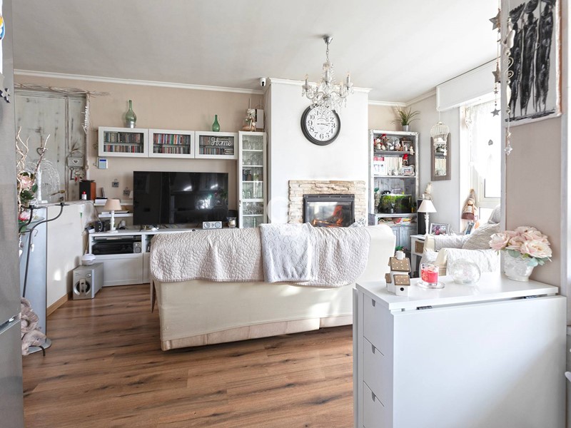 Lingresso si apre su un luminoso soggiorno con camino, cuore caldo della casa, perfetto per le serate invernali, con cucina a vista pensata per la convivialità ed un terrazzo vivibile, che risulta essere un vero valore aggiunto, affacciato sul verde dove godersi colazioni lente, letture al sole o cene estive immersi nella quiete.
