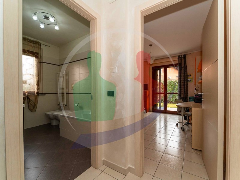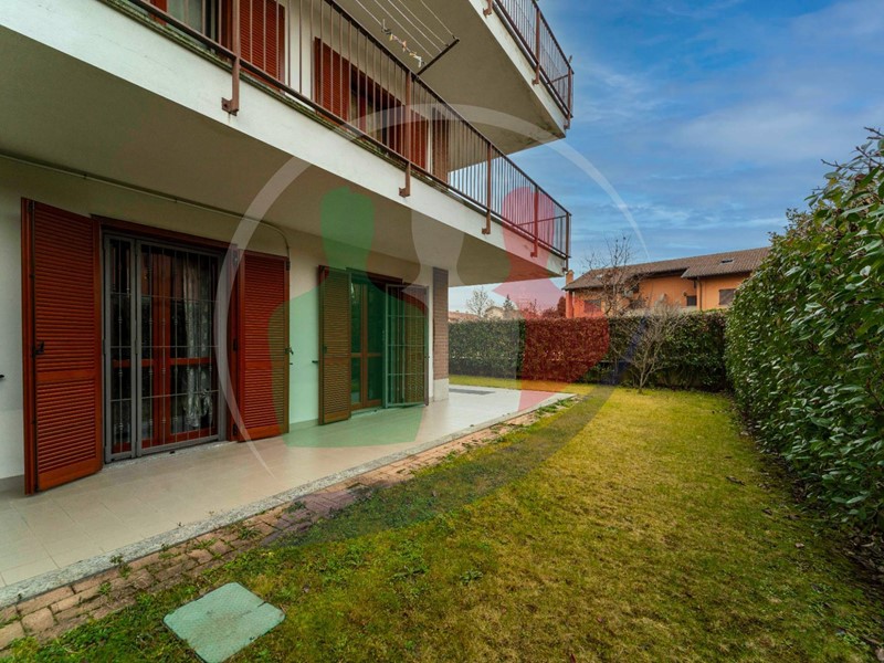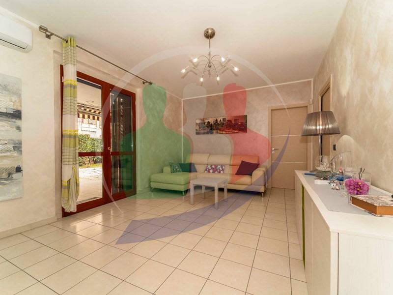 In zona residenziale di recente costruzione, propongo appartamento al piano terra con ampio giardino su tre lati in palazzina del 2010, composto da: