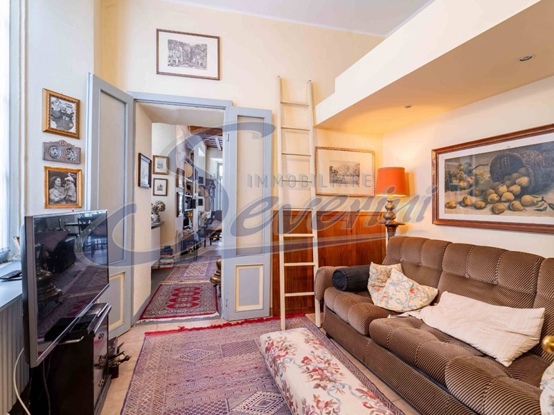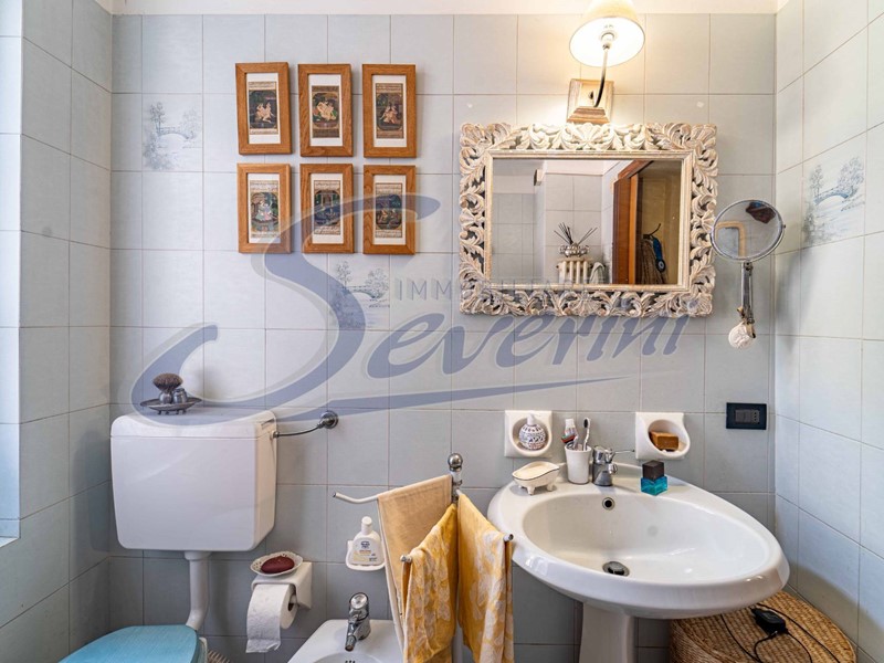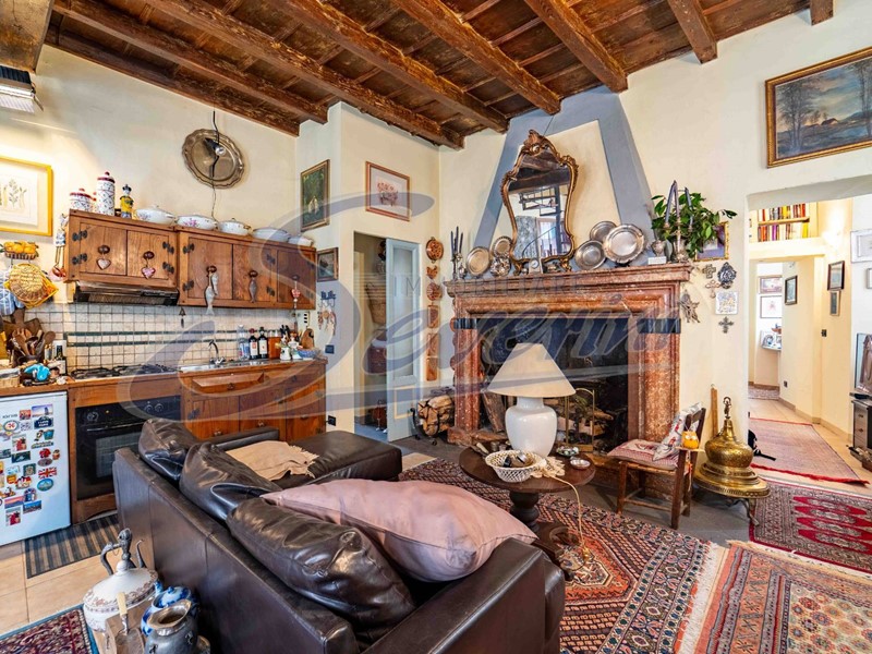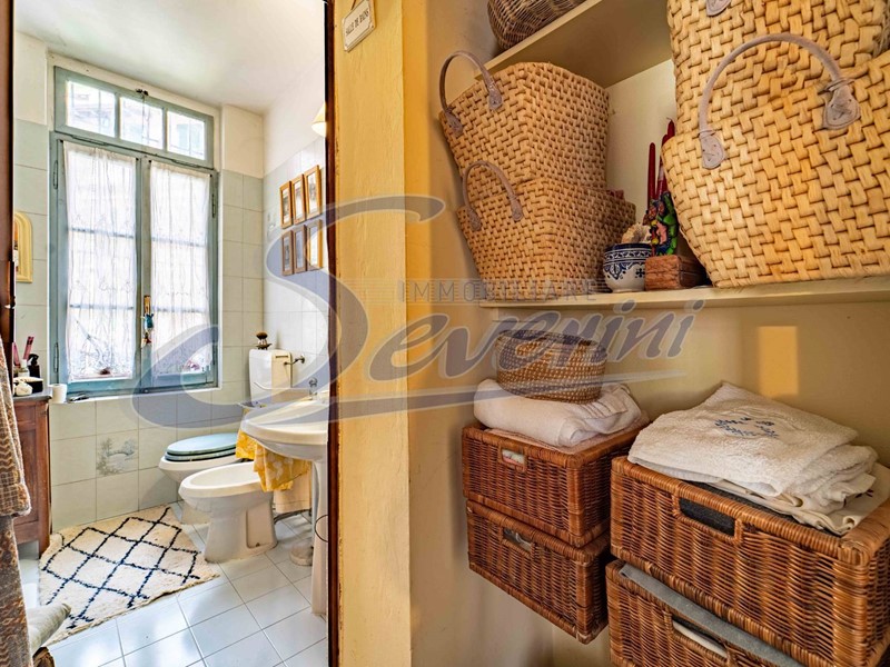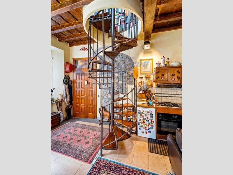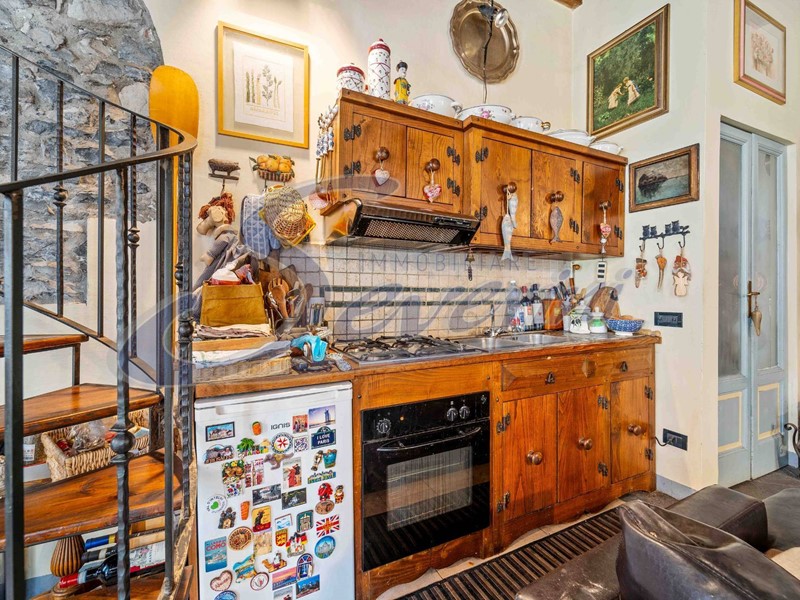 L'abitazione in vendita sviluppa circa 150 mq divisi al piano primo una grande sala con angolo cottura e terrazzino con vista , camera matrimoniale , salottino tv, antibagno e bagno finestrato; al secondo piano , collegata internamente alla sala del primo con artistica scala in ferro a chiocciola, una seconda camera matrimoniale e terrazzino con vista. Non direttamente collegati con l'appartamento princicipale , con accesso alla scala condominiale, al piano terra si trovano un locale lavanderia e con ampia finestra e un locale legnaia per circa 20 mq e al terzo piano, soprastante l'appartamento , una grande mansarda finestrata, composta da due locali di totali mq. 80 circa utilizzabili come studio, palestra o altro secondo le esigenze. I locali sono arredati con mobili d'epoca che vengono ceduti compresi nel prezzo di acquisto; su richiesta si cede un piccolo gozzo ormeggiato nel porticciolo del paese ubicato poco lontano dalla casa.