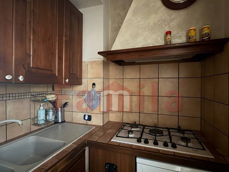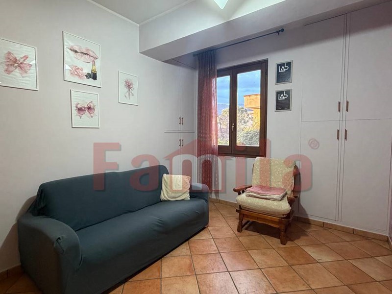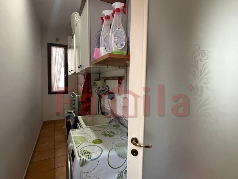 L'appartamento, di circa 110 mq, è composto da ampio salone con termo camino a pallet, cucina con angolo cottura, camera da letto con bagno, cameretta, un altro bagno, due ripostigli e lavanderia.