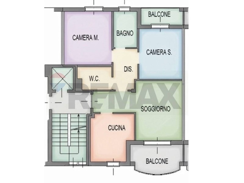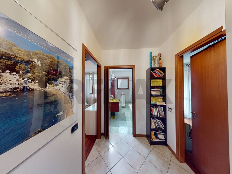 Composizione: Ingresso, cucina semiabitabile, soggiorno con terrazzino, disimpegno, camera matrimoniale, camera singola con balcone, bagno con vasca, secondo bagno/WC.