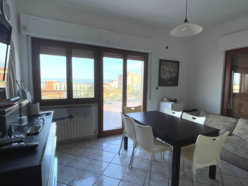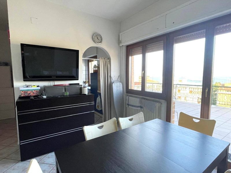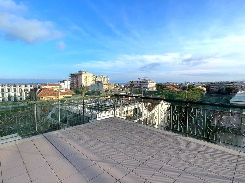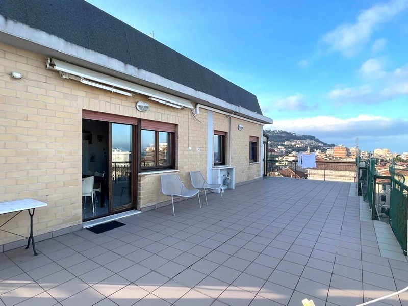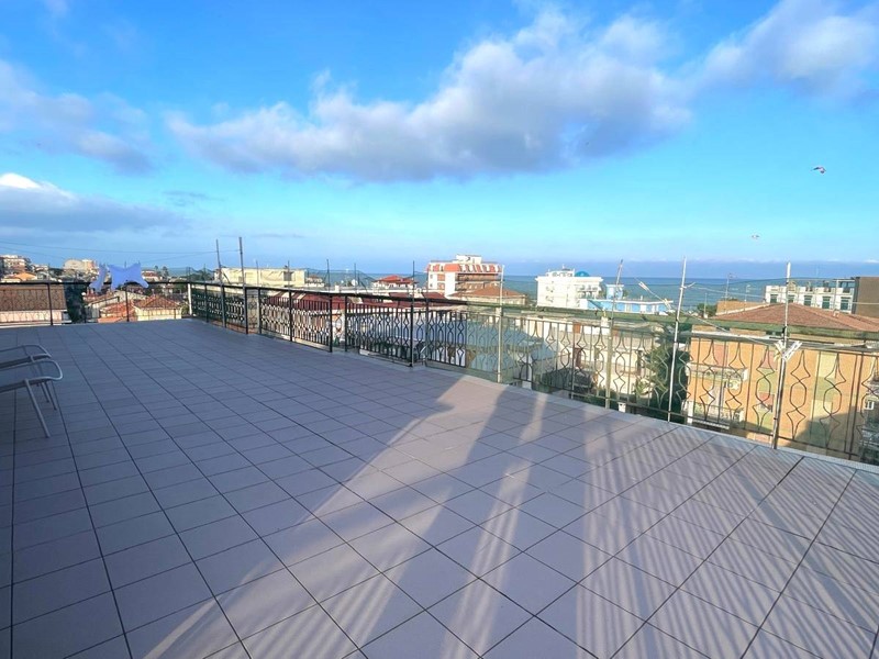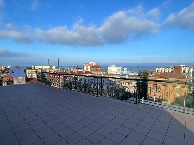 Attico al Piano Quinto servito da ascensore, delle dimensioni di 76 mq circa, composto da ingresso su soggiorno, cucina solo cottura, due camere da letto matrimoniali e bagno finestrato con doccia, oltre splendida terrazza vista mare di 100 mq. circa.