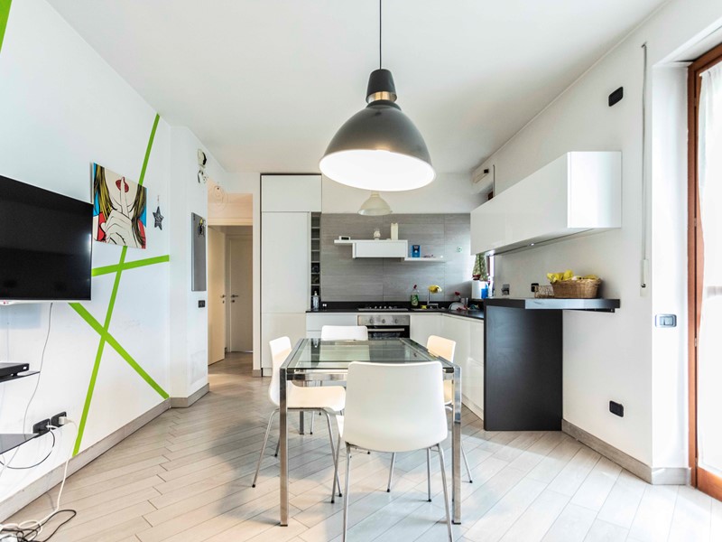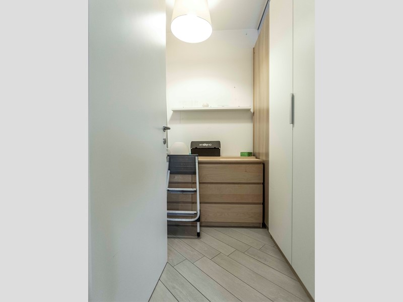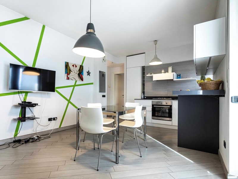 L'appartamento, completamente arredato, è composto da ingresso, cucina living, disimpegno, due camere, bagno finestrato e cabina armadio.