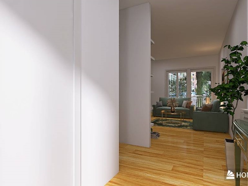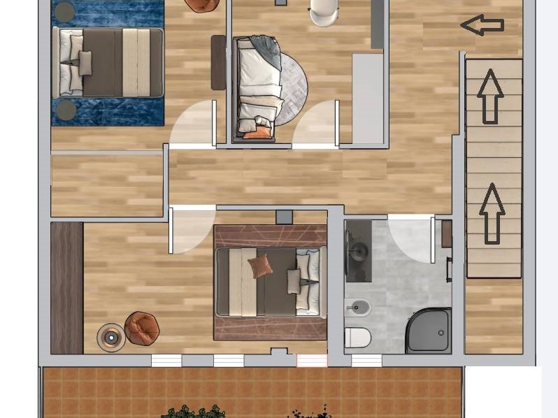 Attraverso le scale in marmo si accede al superattico dove troviamo un soggiorno con cucina a vista, 2 camere, corridoio, bagno e un balcone.